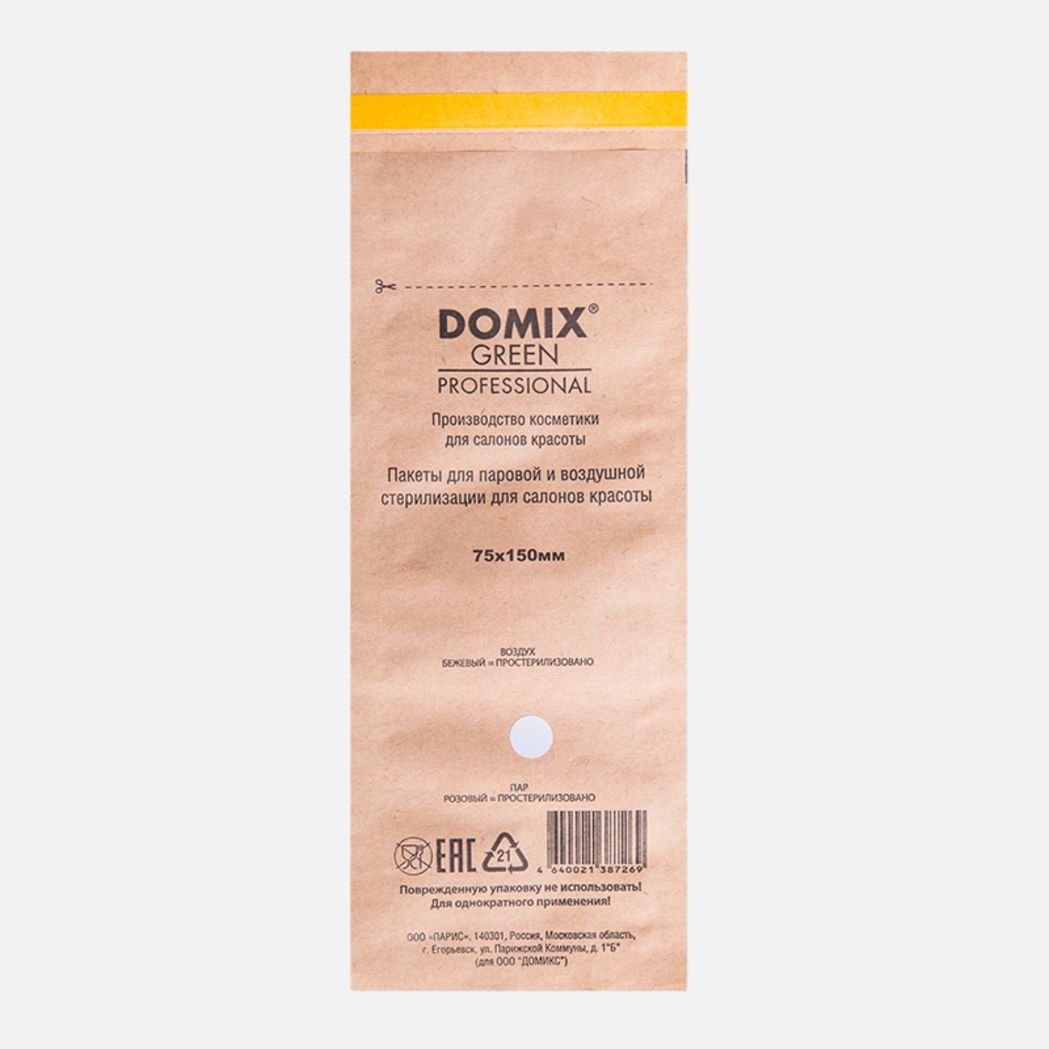 Крафт-пакеты коричневые 75х150 для стерилизации и хранения инструментов №3 Domix Green 100 шт