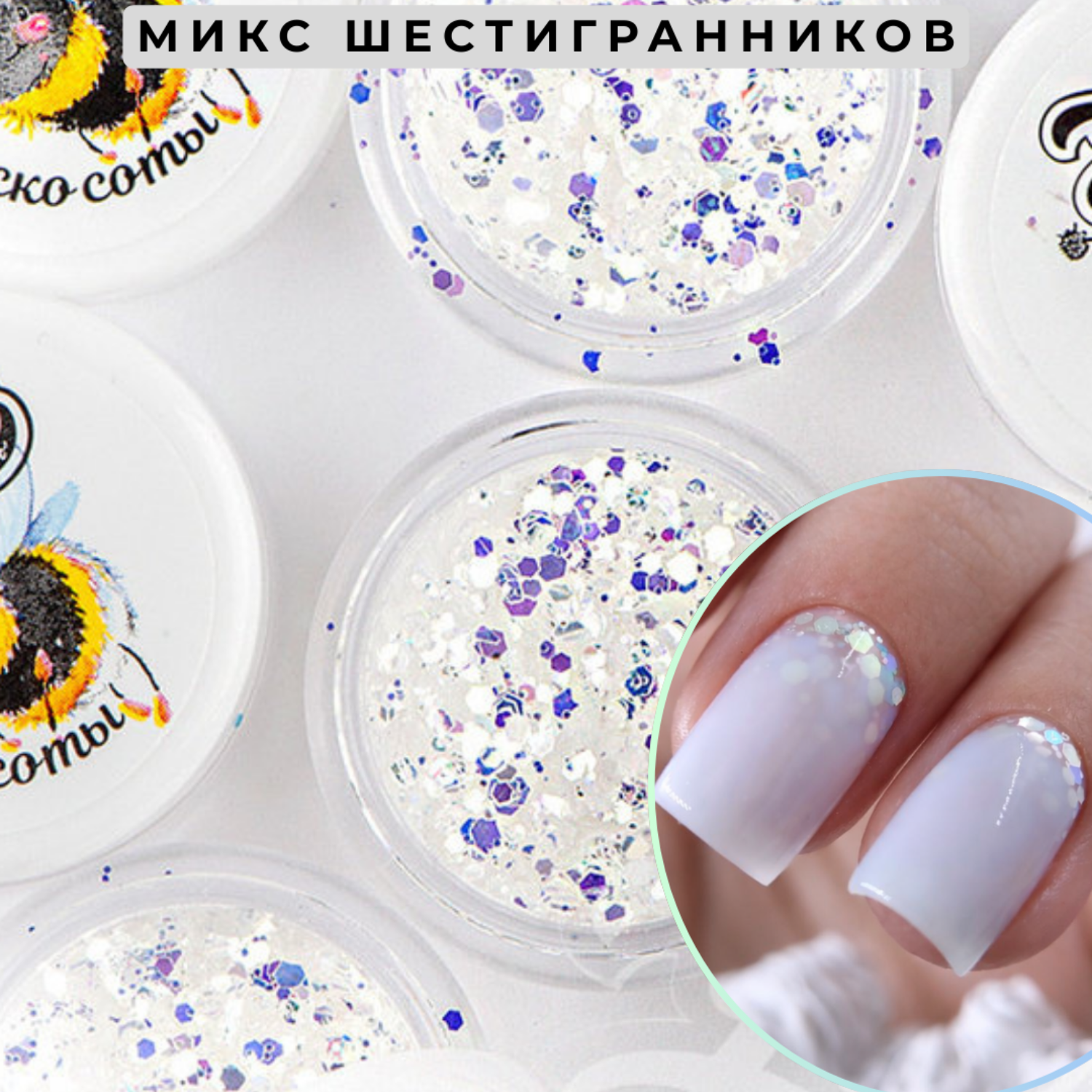 Мега-популярный дизайн «Диско соты»! Шестигранники микс - 100% размерный аналог Crush Glitter.