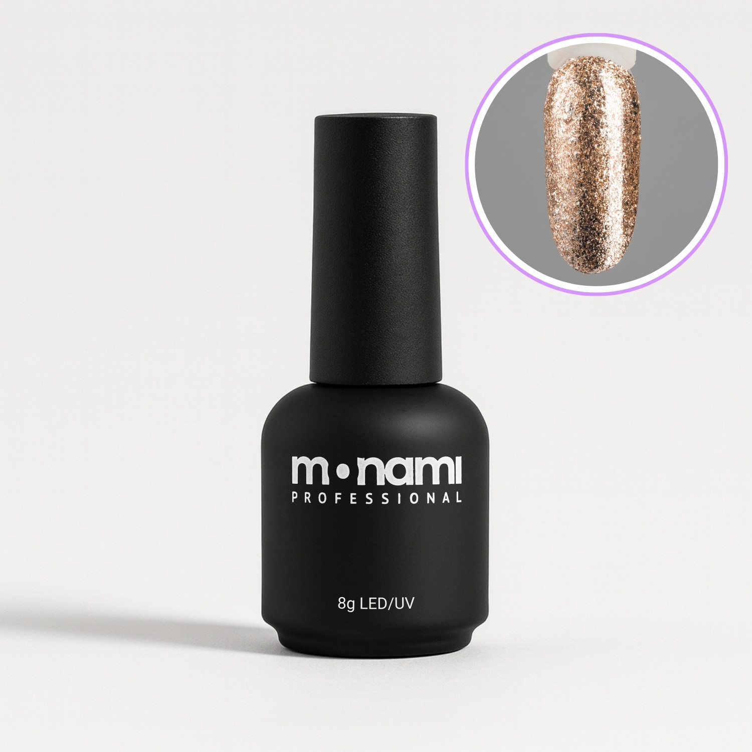 Гель-лак Monami в золотом оттенке, со слюдой, плотный – это непревзойденное качество покрытия и стойкость вашего маникюра.