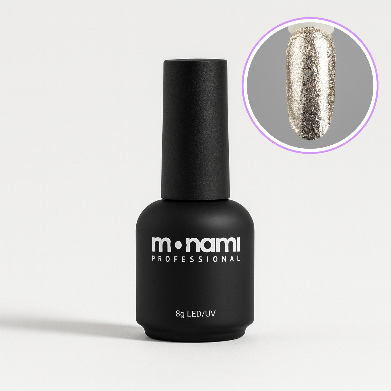 Гель-лак Monami в золотом оттенке, со слюдой, плотный – это непревзойденное качество покрытия и стойкость вашего маникюра.