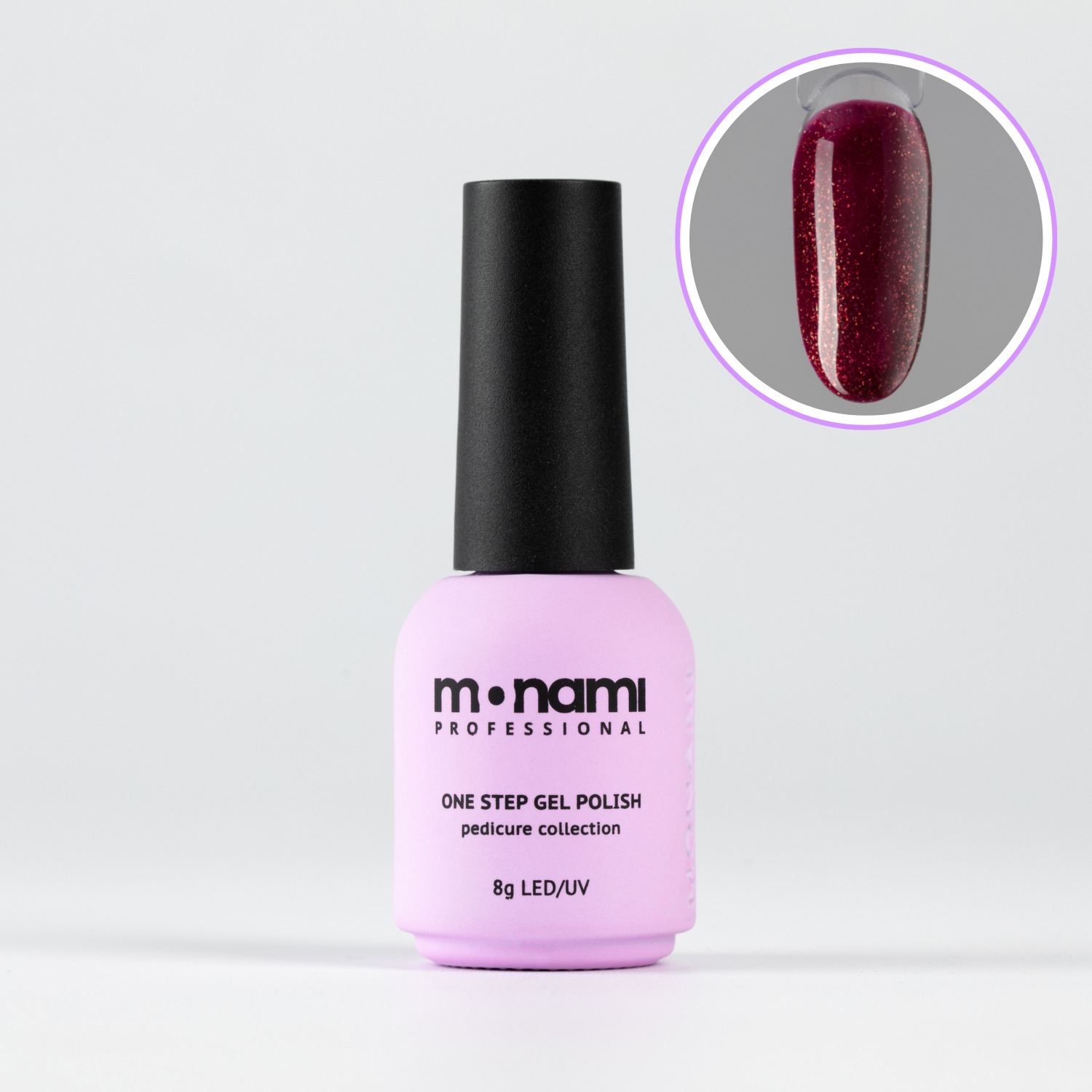 Однофазный гель-лак Monami бордового оттенка с шиммером средне-жидкой консистенции – это непревзойденное качество покрытия и стойкость вашего маникюра.