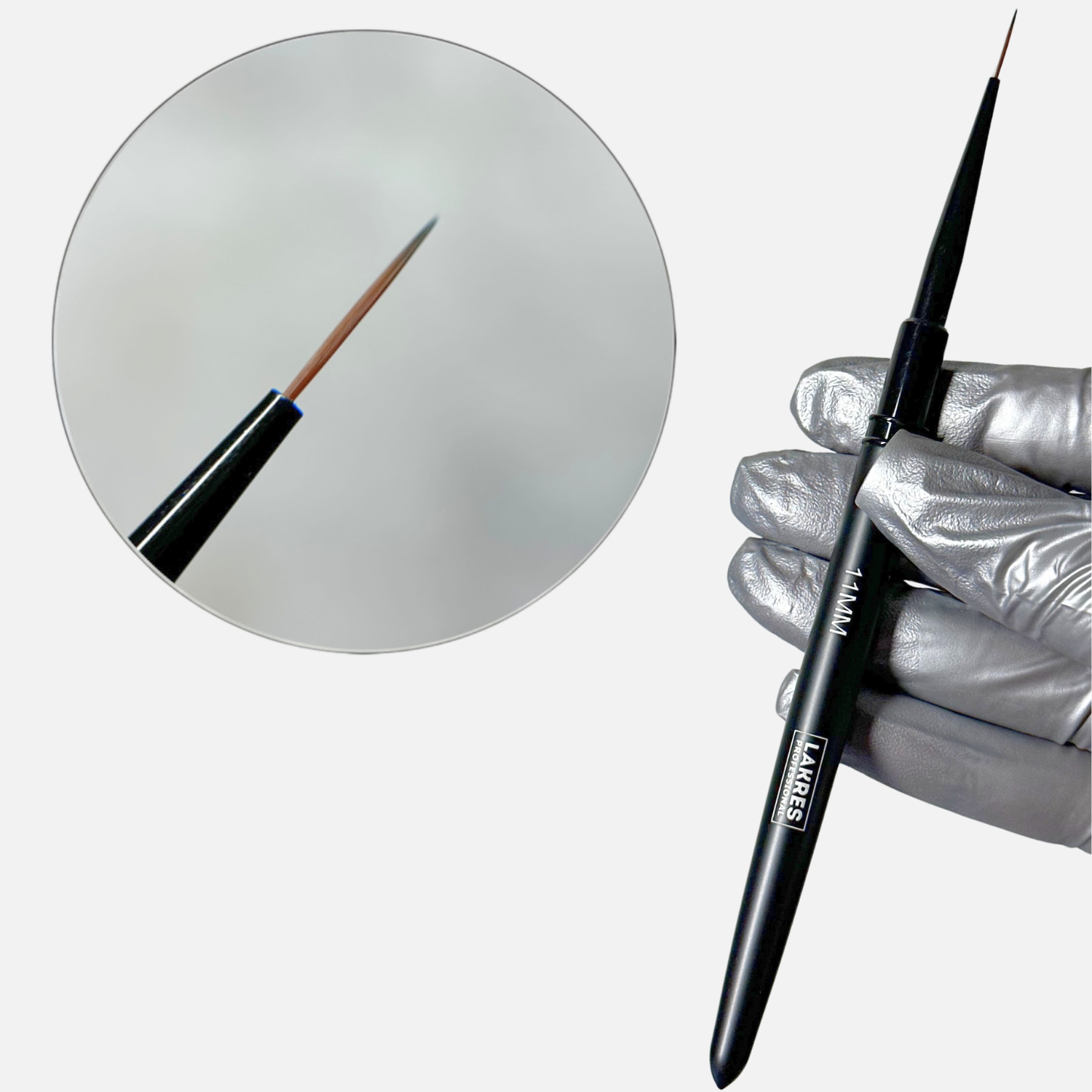 Кисть для дизайна ногтей Lakres типа «волосок» является страйпером. Это кисть с очень тонким и длинным пучком; её удобно использовать для прорисовки тонких линий и вензелей. Благодаря своему длинному ворсу, кисть проводит линии с особой точностью.