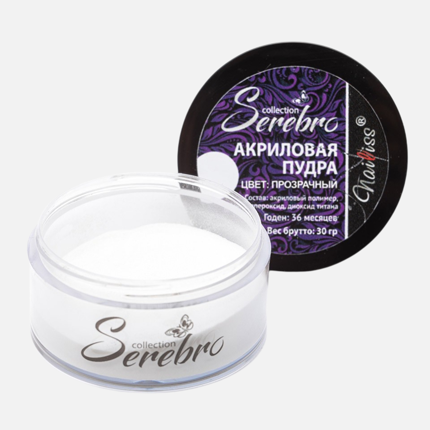 Акриловая пудра Serebro прозрачная (Clear), 30 г
