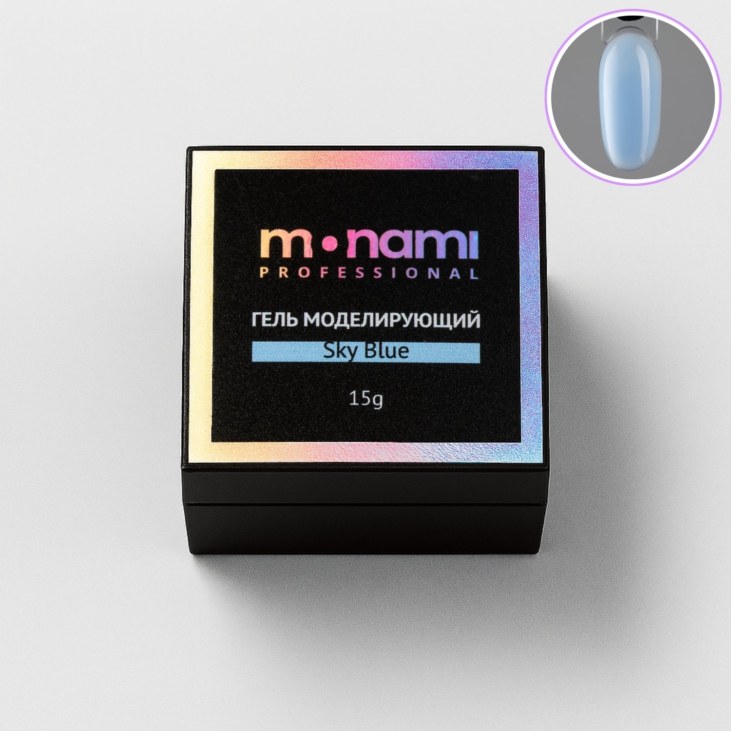 Гель Monami для наращивания, небесно-голубого оттенка. Гели послушные в работе, легко выравниваются, имеют липкий слой, средне-жидкой консистенции. Уникальная формула материала позволяет создавать крепкие, «носибельные» ногти.