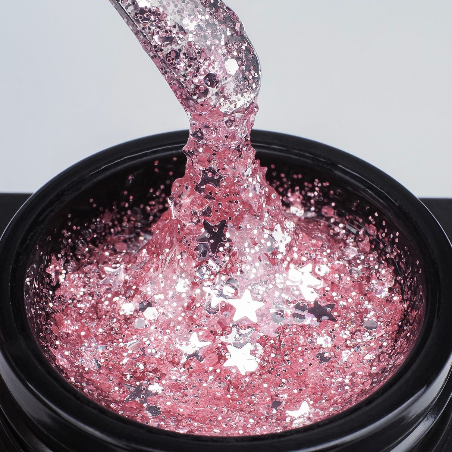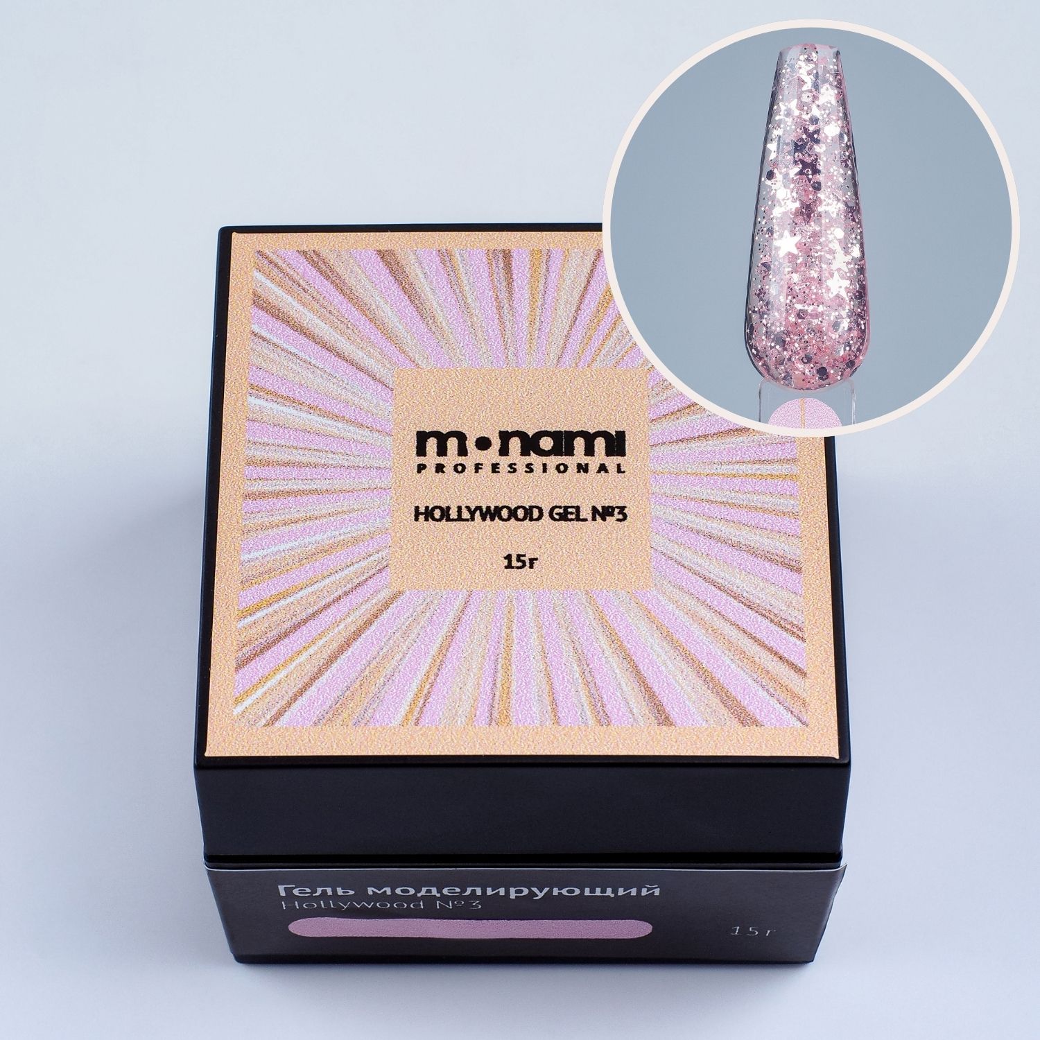 HOLLYWOOD Gel №3 — Дерзкий, игривый и абсолютно гламурный! Этот розовый оттенок — воплощение современной голливудской дивы, которая не боится быть собой и покорять сердца. Он насыщен ослепительной россыпью розовых звездочек, которые переливаются, словно бриллиантовая пыль, добавляя маникюру экстрава…