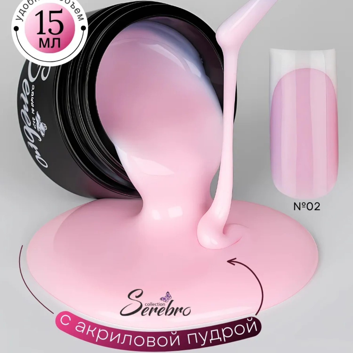 Моделирующий гель с акриловой пудрой Serebro Modeling Gel №02 15 мл