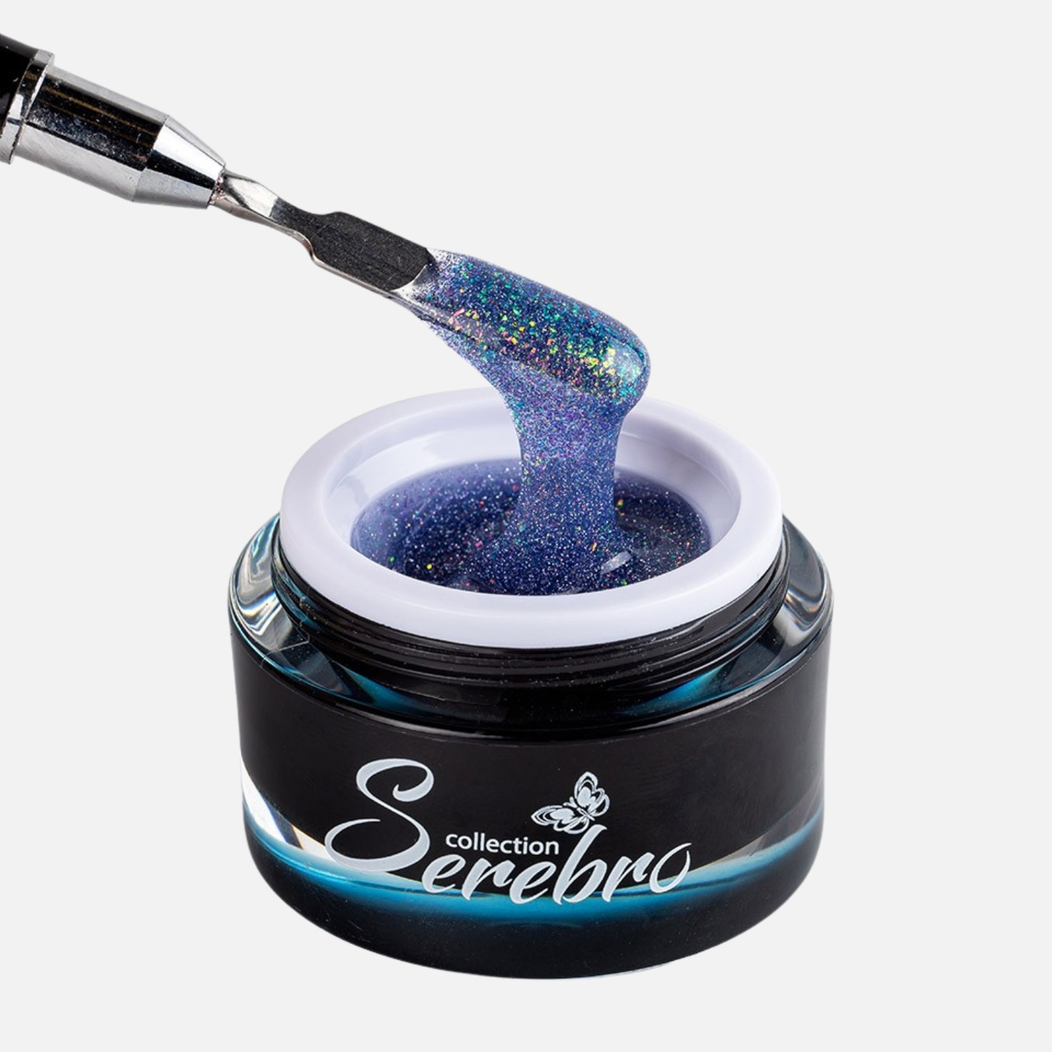 Serebro Modeling Gel — это профессиональный моделирующий гель с насыщенным количеством светоотражающих блёсток, разработанный специально для работы в технике «без опила».
