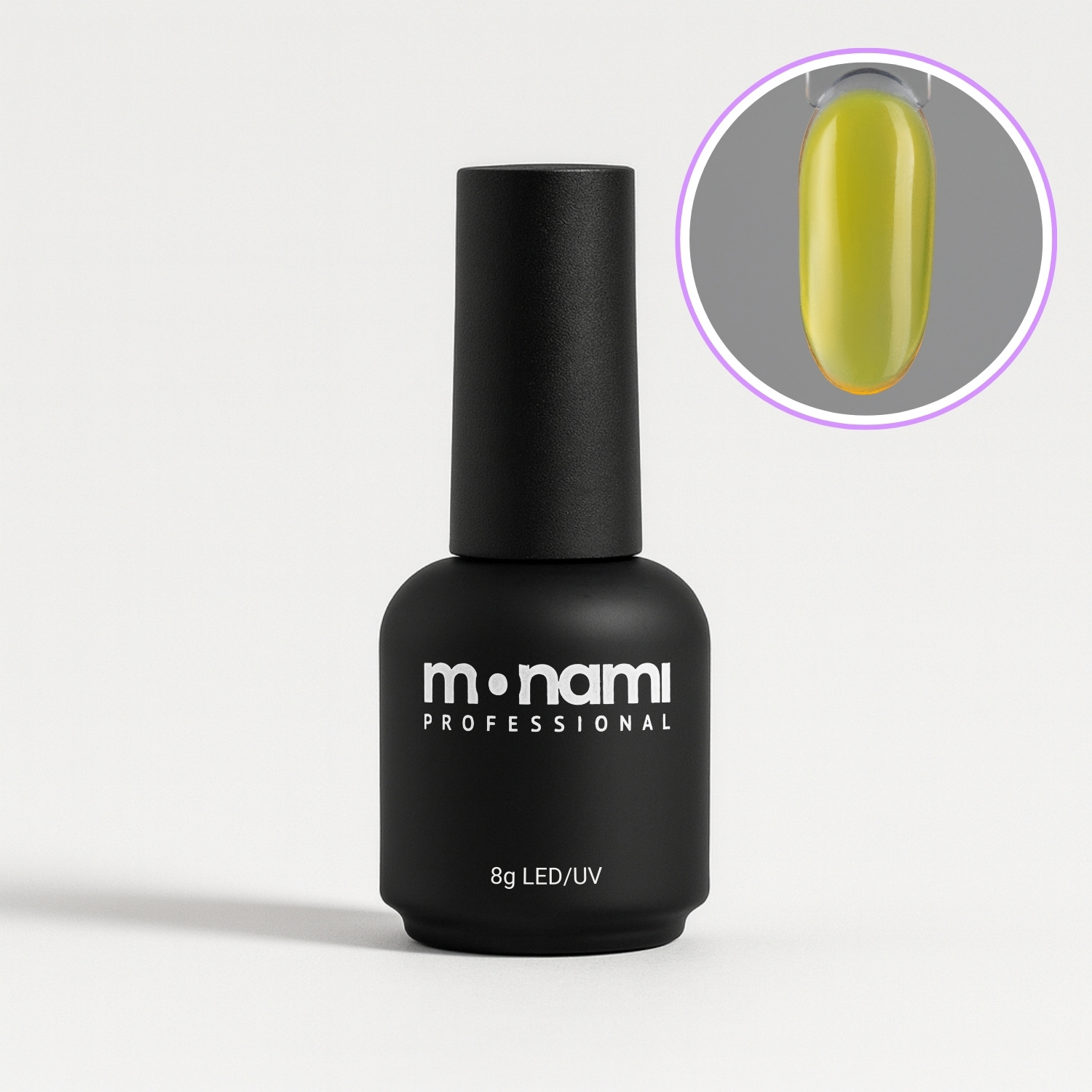 Гель-лак Monami в желтом цвете без переливов – это непревзойденное качество покрытия и стойкость вашего маникюра.