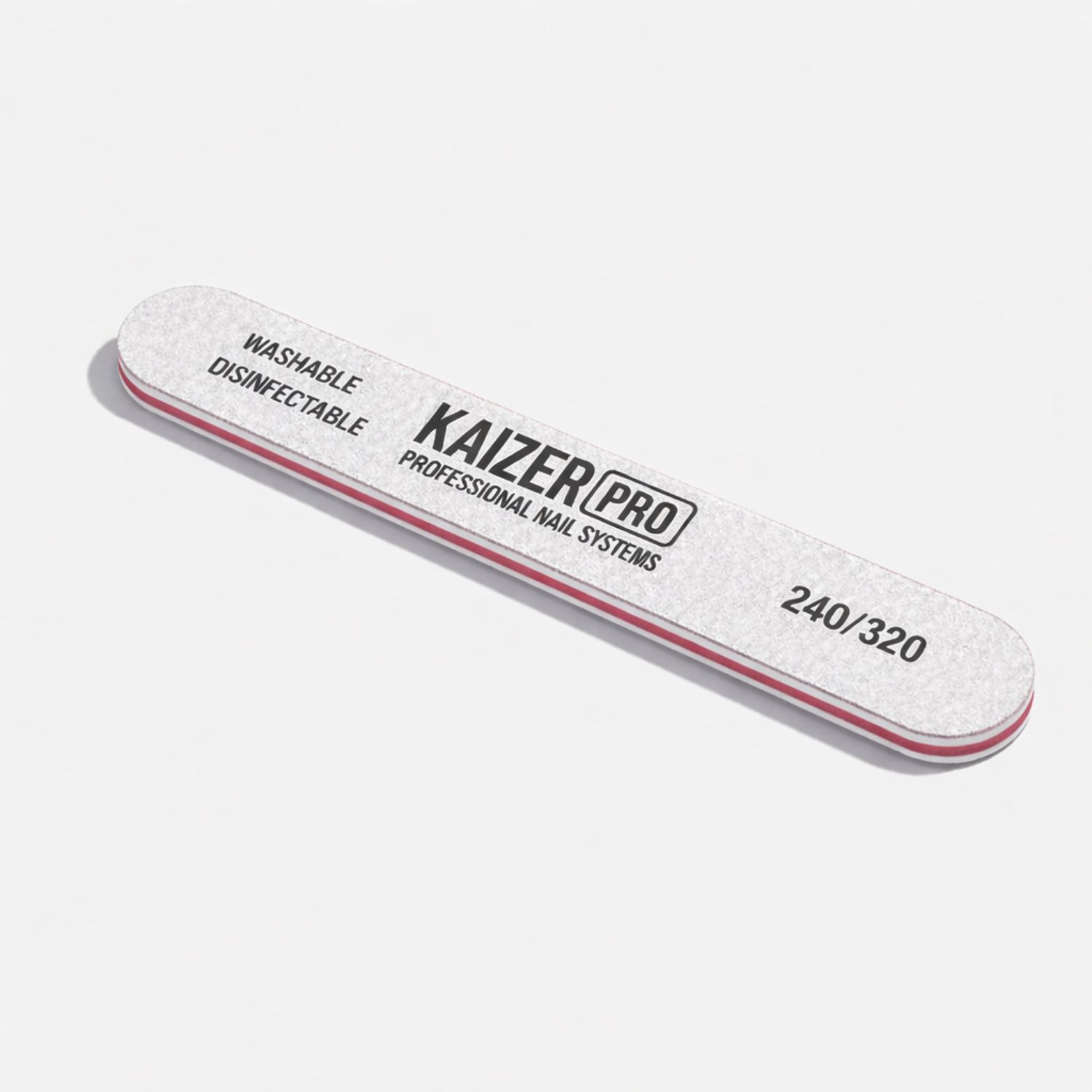 Пилка на пластиковой основе мягкая Kaizer Pro прямая серая 240/320 NF-217 — профессиональный инструмент для аккуратной и деликатной обработки натуральных ногтей.