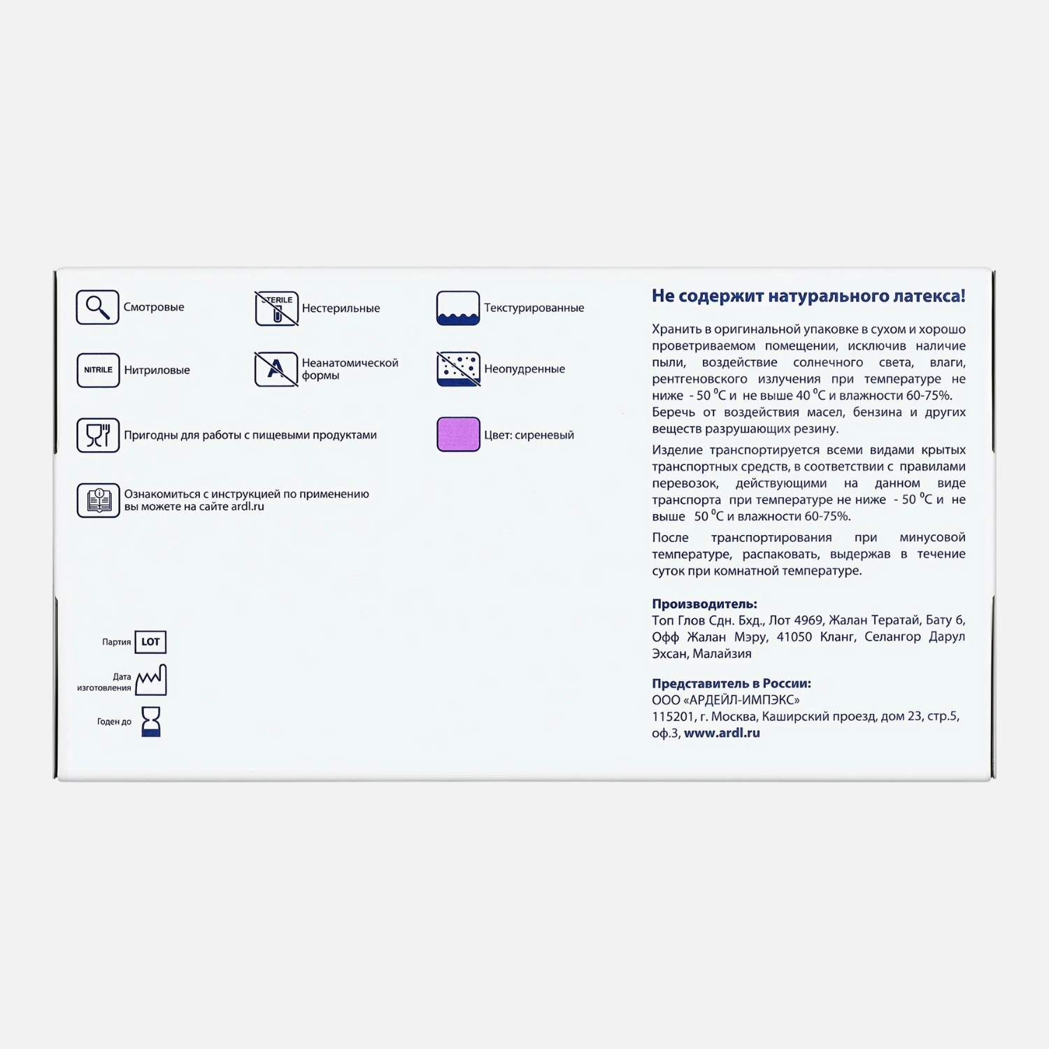 Перчатки NitriMAX рекомендованы для проведения процедур, требующих применения неопудренных перчаток и при наличии аллергических реакций на пудру и латекс.